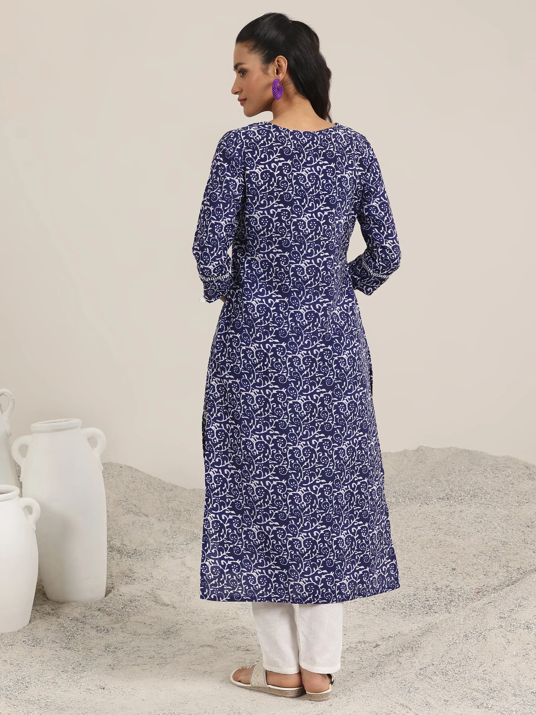 Indigo Printed Silk Blend Straight Kurta