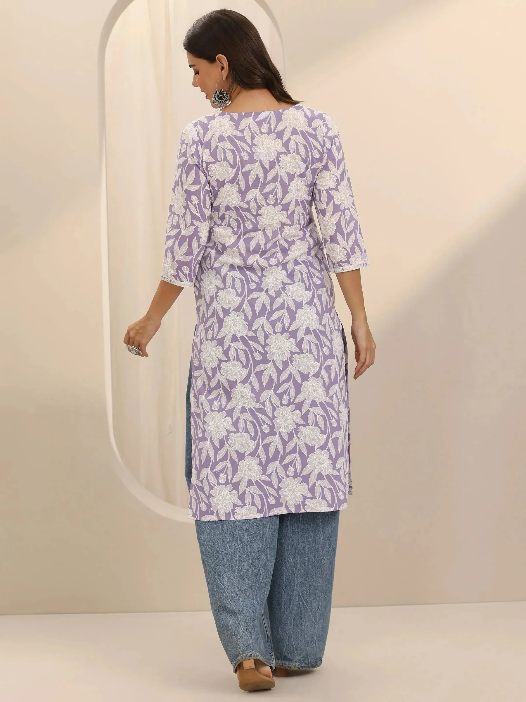 Lavender Straight Printed Cotton Kurta