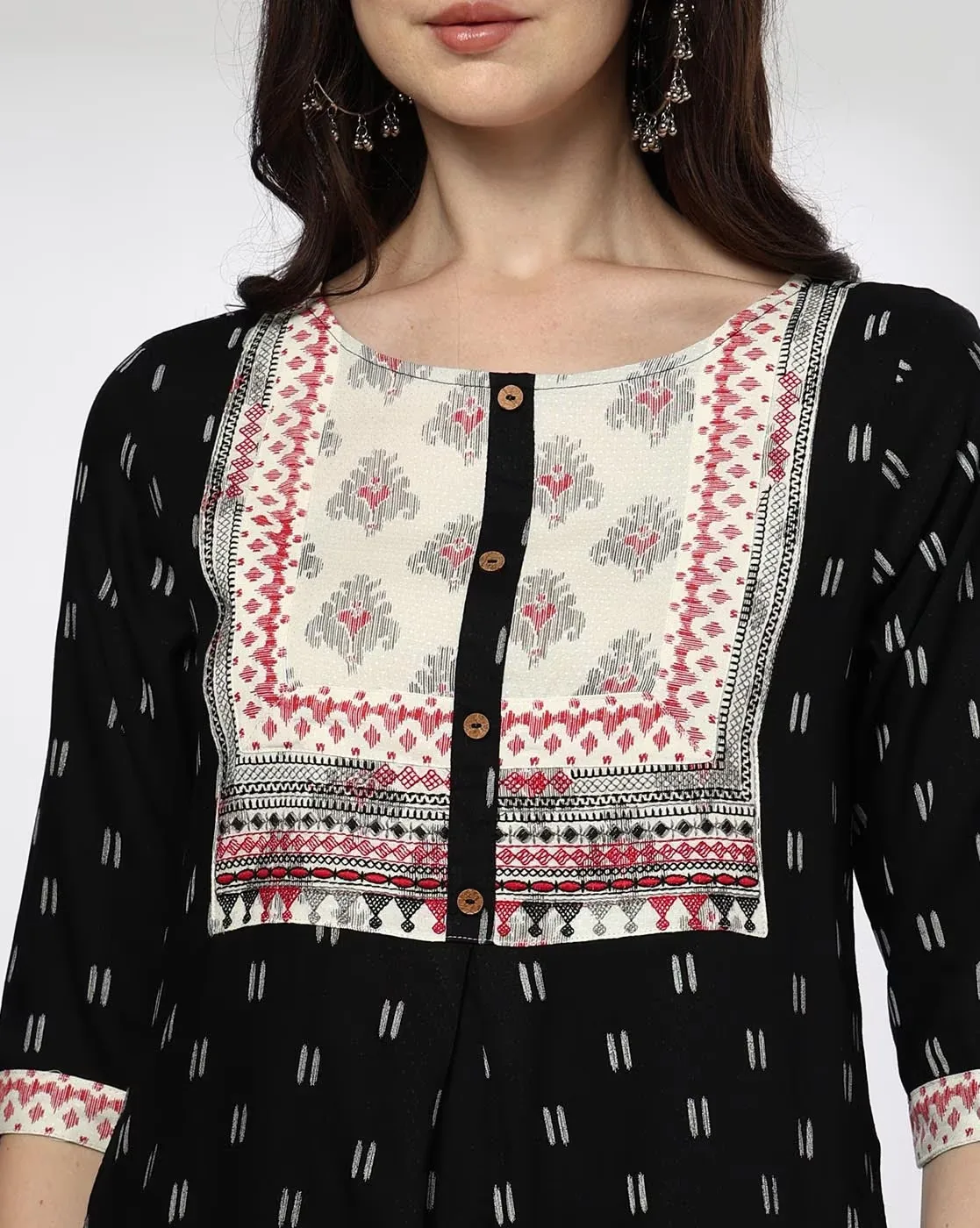 Women Zig-Zag Cross Stitch Embroidered Straight Kurta
